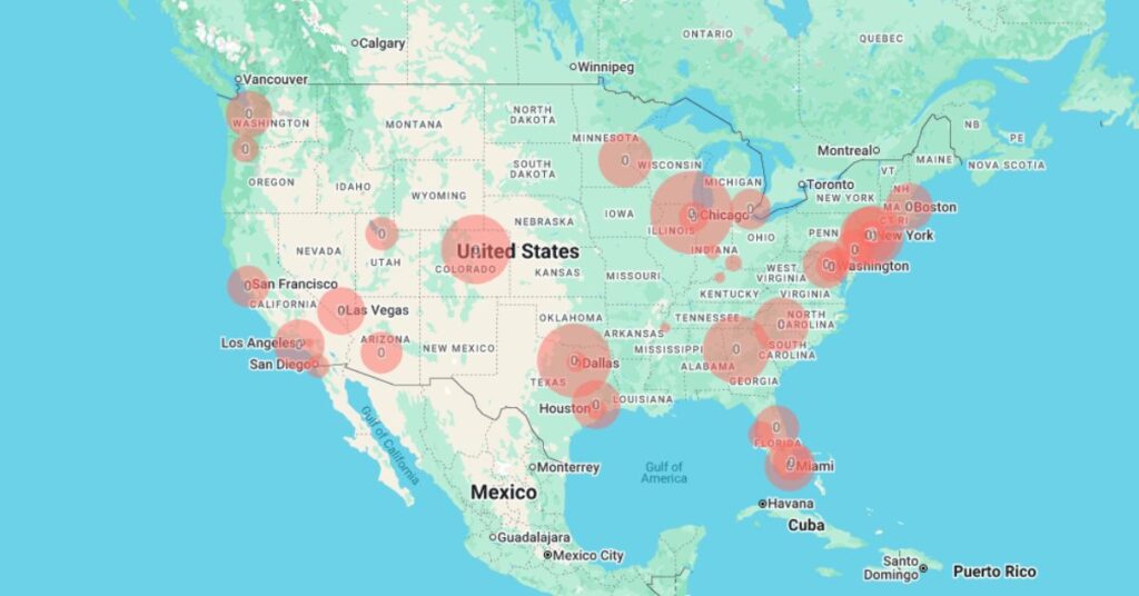 To better understand where travelers are most affected, we created an interactive map on ZeeMaps highlighting every U.S. airport facing flight cuts. Each marker includes key information: